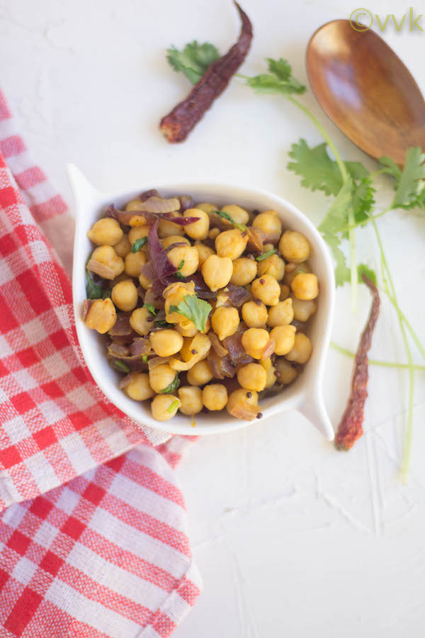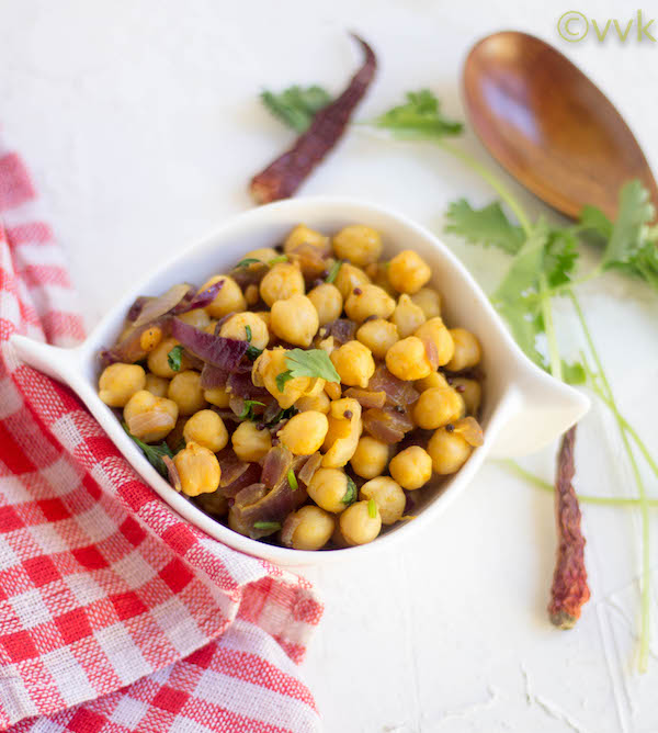 I know we always prepare the legume-based stir-frys or sundal during Navratri. But sundals are not only a great Navaratri prasadam but also a guilt-free and a healthy snack that curbs the hunger pangs. You can enjoy it with your coffee or tea too. As it is not for neivediyam (offering to God), I included onions as well.