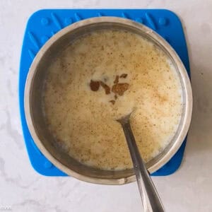 You can thin it down by adding more milk so each serving can be 200 to 240ml. You can also reduce the milk and make it like a gruel/thick porridge or koozh, as we say in Tamil. In that case, each serving will be 2 tbsp. We usually take this garlic milk weekly once.
