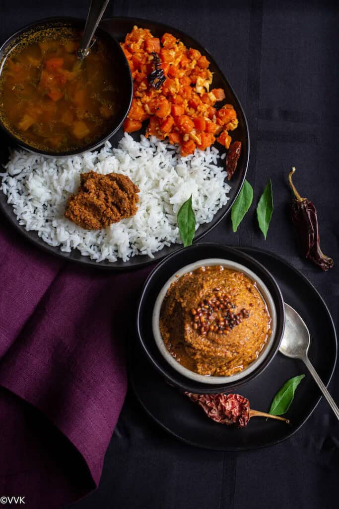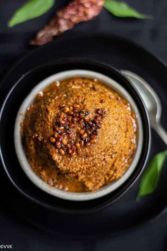 This is a vegan, gluten-free, and nut-free chutney recipe perfect for all. When I serve this chutney with plain steamed rice, I usually add gingelly oil. If you are okay with dairy, you can add ghee also.