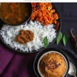 We usually relish this with plain rice and yogurt rice. But you can also serve this with idli or dosa. In that case, take the required amount, add little extra water to thin it down.