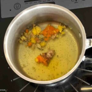 - Simmer the spices: In a saucepan, add 1 cup of water and bring it to a gentle simmer. Add crushed ginger, turmeric, and cardamom, letting it simmer for 2 minutes.