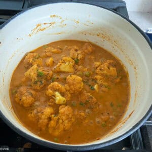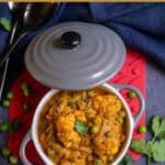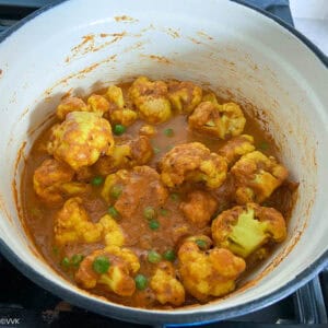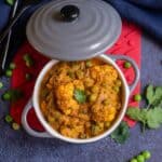 Delicious gobi matar or the cauliflower and peas curry – my take on the vegan version of the popular matar paneer replacing paneer with cauliflower! A great side for rice and flatbreads.