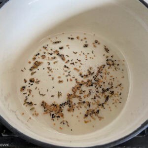 - Heat a pan or kadai and add the oil. When the oil is hot, add the panch phoron spice mix.