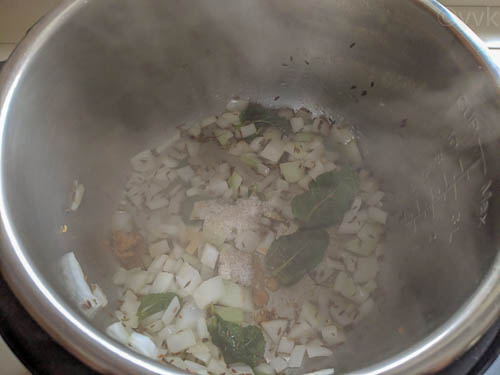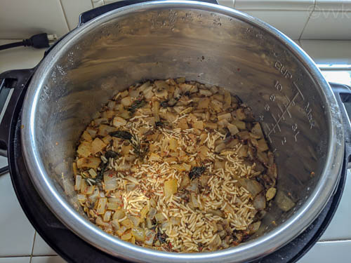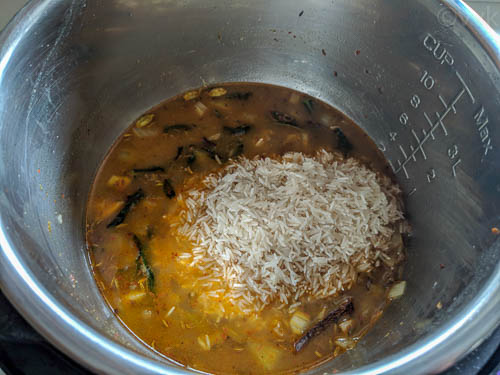 I made this pulav in the Instant Pot and I used the “Rice” preset as I used for my fenugreek leaves pulav.