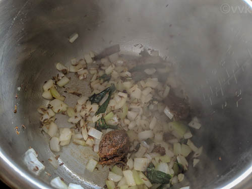 Even though homemade gongura pickle has its charm, you don’t need homemade one for this pulav. You can always opt for a store-bought one. And that’s what I did. When I picked Priya biryani masala for my eggplant biryani, I found the gongura onion pickle from the same brand and out of curiosity I chose it. (PS: This is not a sponsored post)