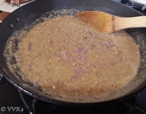 - Once the kootu starts simmering, turn off the heat.
