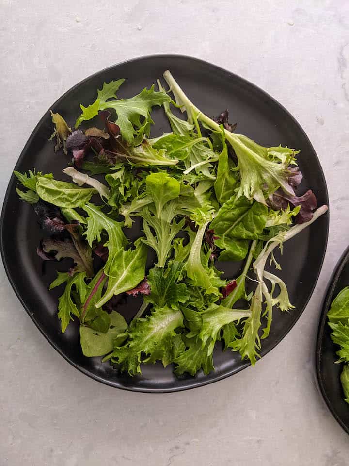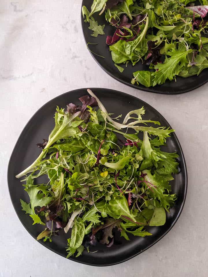 Again, I went with store-bought mixed microgreens for this salad. But microgreens are optional. You can even make this salad without them, or you can increase the measure of microgreens and reduce the ratio of mixed greens.