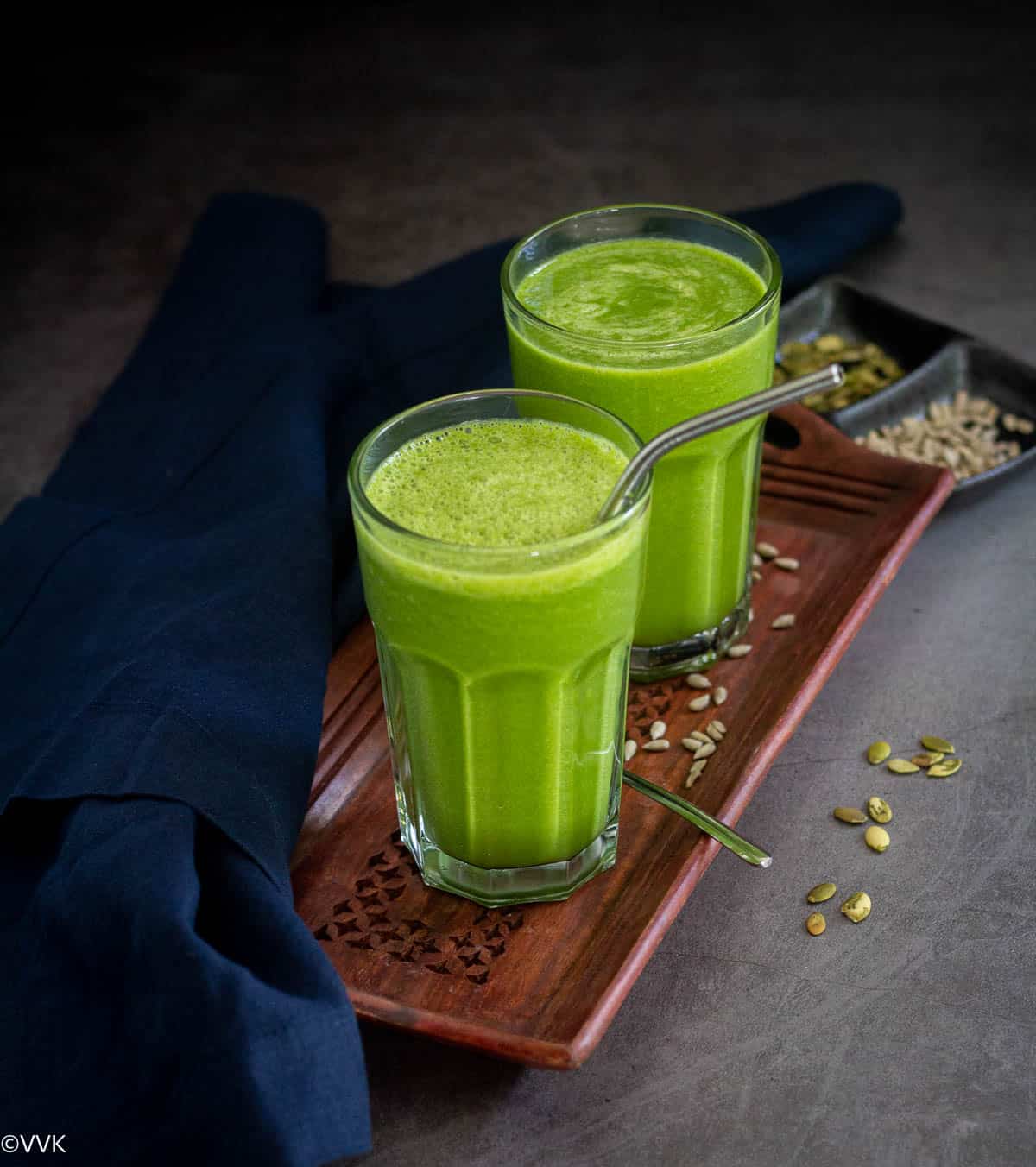 Here is a spinach smoothie that’s appealing and delicious. If you are getting acquired to the spinach taste in smoothies, this recipe of mine is a perfect one. I haven’t overloaded the smoothie with spinach. :-)