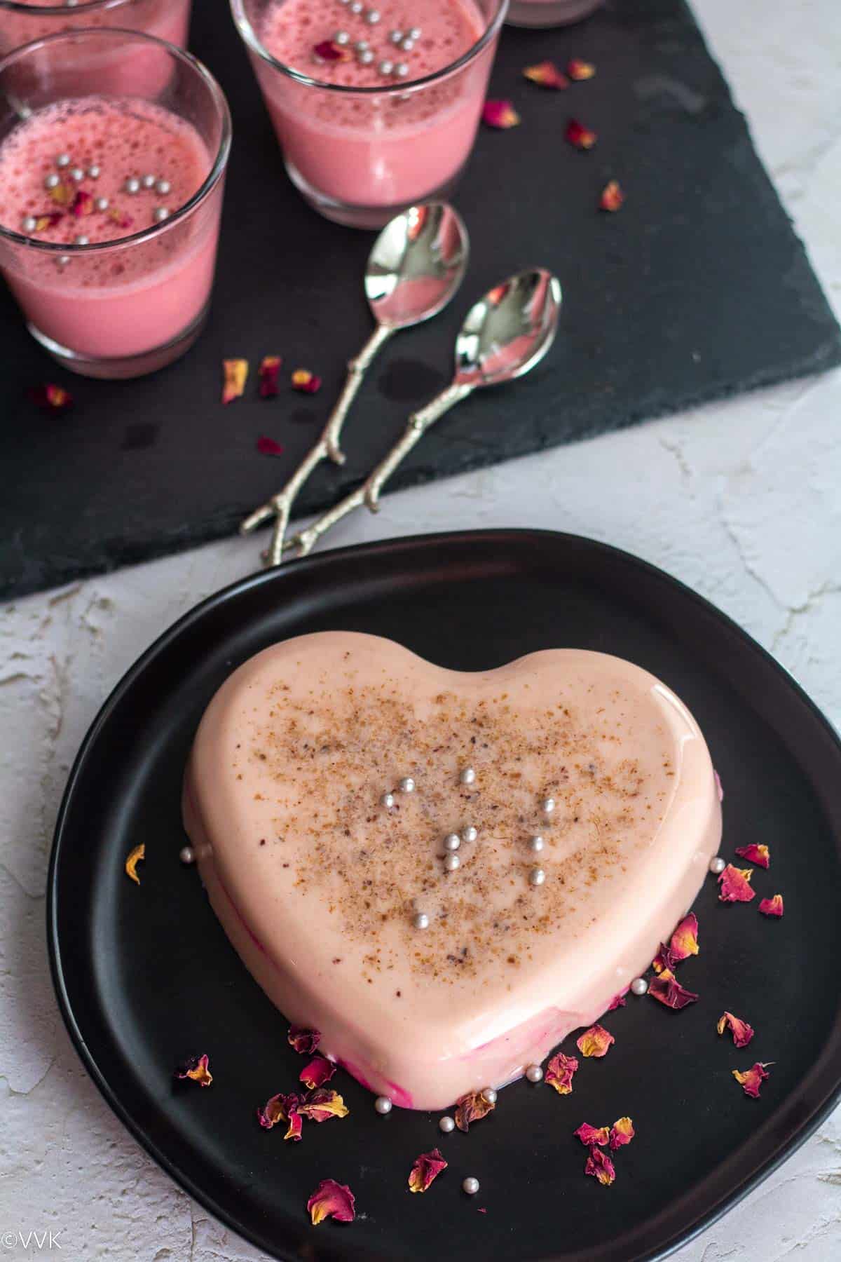 I kept this as a single-flavored and single-layered dessert. But like my mango panna cotta, you can easily make this into a layered dessert. You can use my classic panna cotta as one layer, and this rose flavor as another layer, making it a stunning dessert.