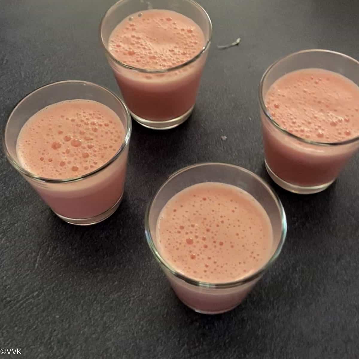 Sugar: I used 3 tbsps of white sugar. The gulkand I used and rose syrup had added sugars, so this measure worked for me. So adjust it as per your taste and based on the added sugar measure of the other ingredients.