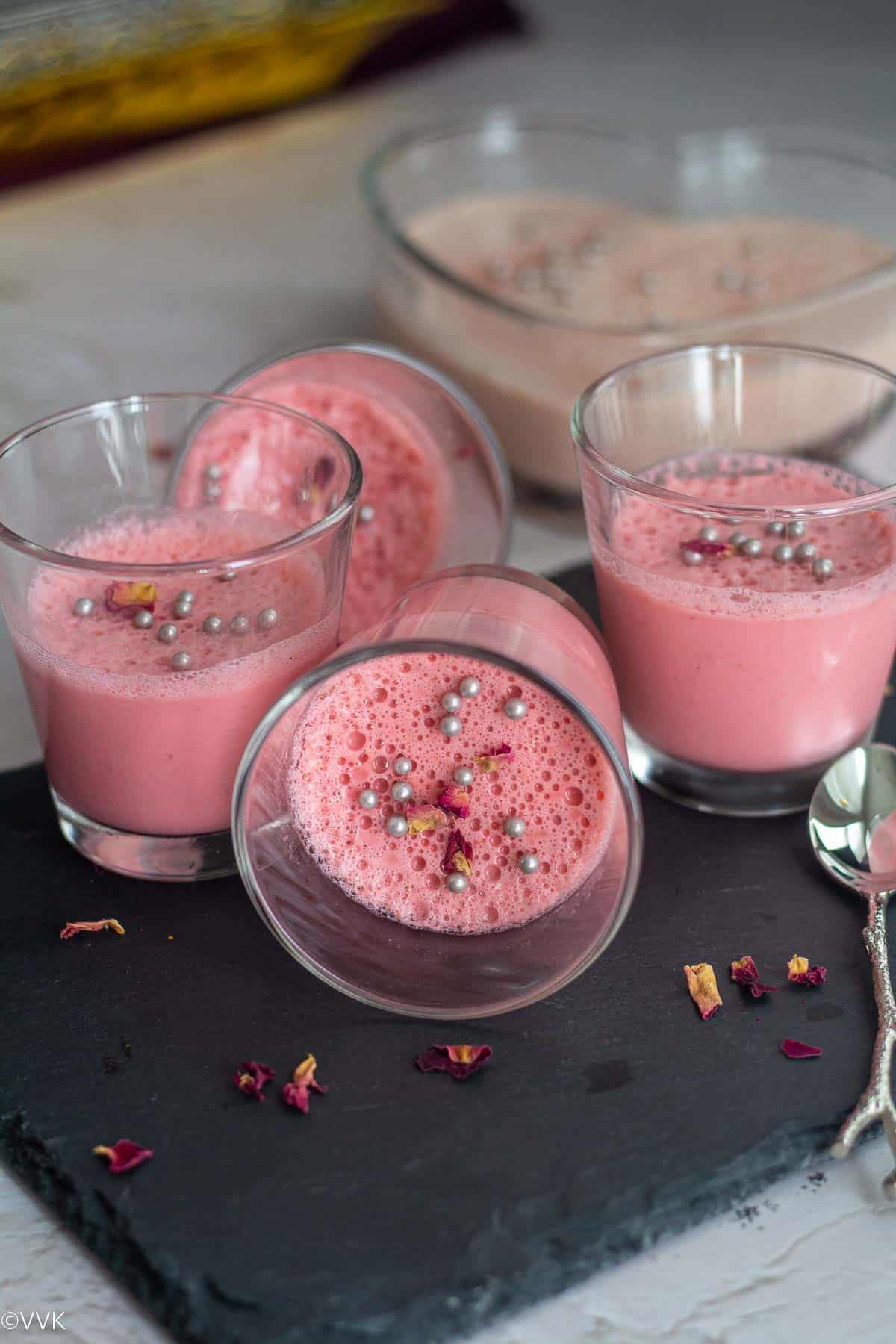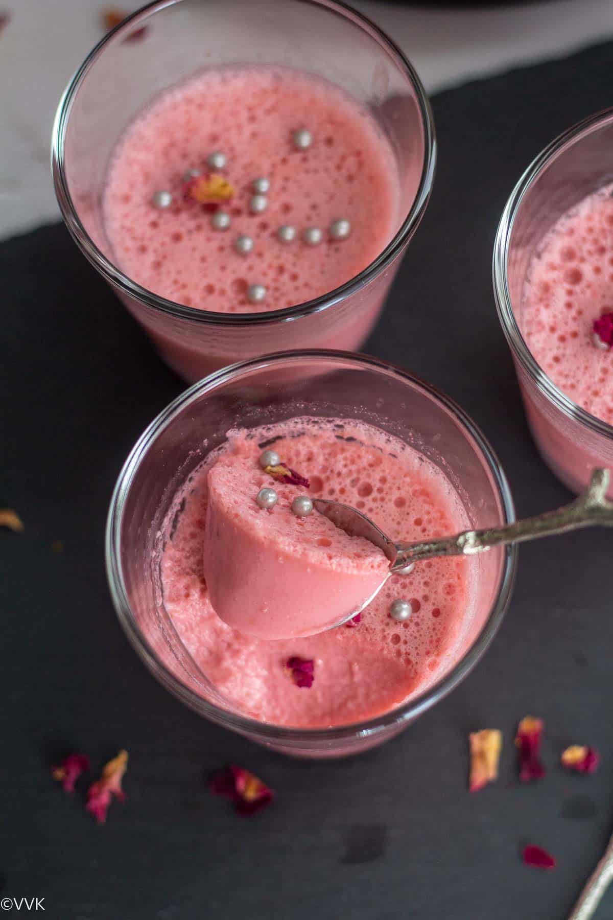 Gulkand and rose syrup: I used gulkand/rose petal preserve and rose syrup in this recipe. Instead of rose syrup, you can add rose essence too. In that, add ¼ tsp of rose essence or as required depending upon the flavor strength of the rose essence.