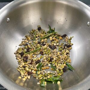 - This time roasted the seeds separately before adding the roasted gram and raisins. But I have tried roasting them all together.