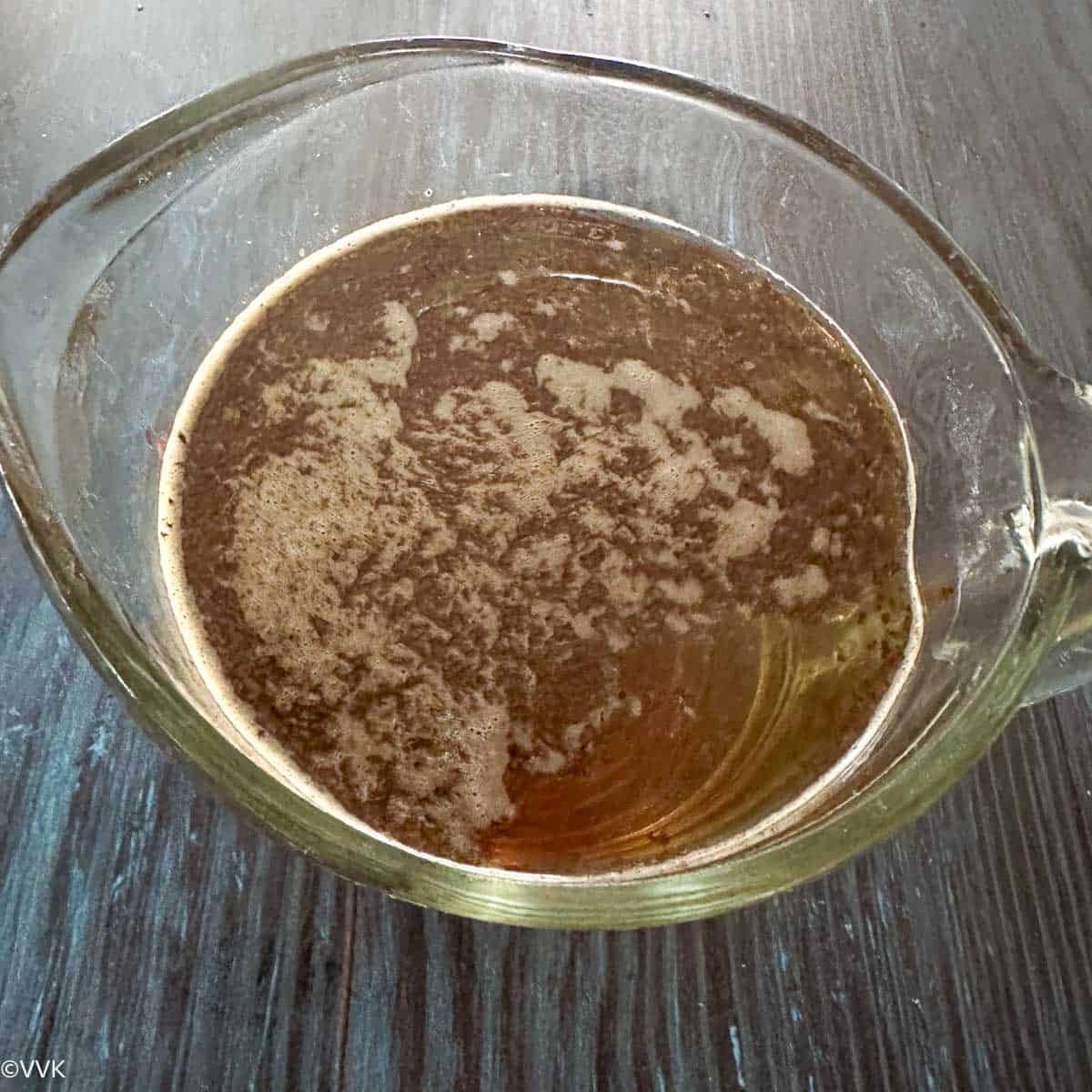 - You can make the tea in your preferred way and as you like. I didn’t opt for a strong tea for this mango tea and went with 2 tsps of black tea. For a strong version, add 3 to 4 tsps of black tea or use the same measure and brew it a little longer.