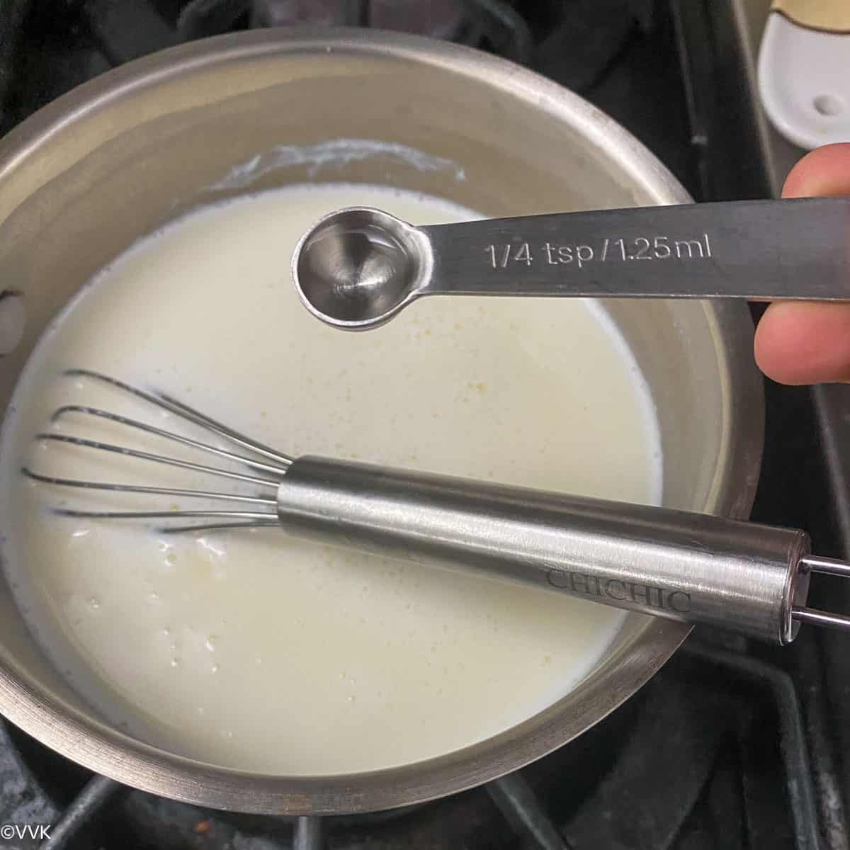 - I used A2 whole milk for this recipe. You can use reduced-fat milk too. PS – I haven’t tested this recipe with any other plant-based milk.