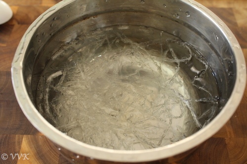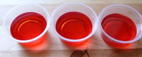 Also, for the china grass, there wasn’t any gel strength information. I had to experiment with different measures for the same. I used up to 10 strands which were approximately 4 tsps. These are sometimes available as rectangular strips also. So it’s better to test them out before trying them out in any recipe. All you need to do is just use them with 1 cup of water and see how long it takes to set and how firm the jello is.