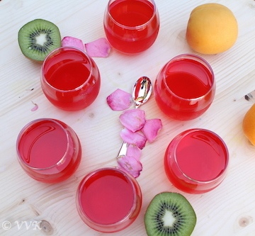 This Homemade Rose Syrup Jelly With China Grass is prepared with rose syrup and lemon juice and it is set using china grass making it perfect for all vegans and vegetarians. Summer always calls for cool desserts and here is a quick and simple one.