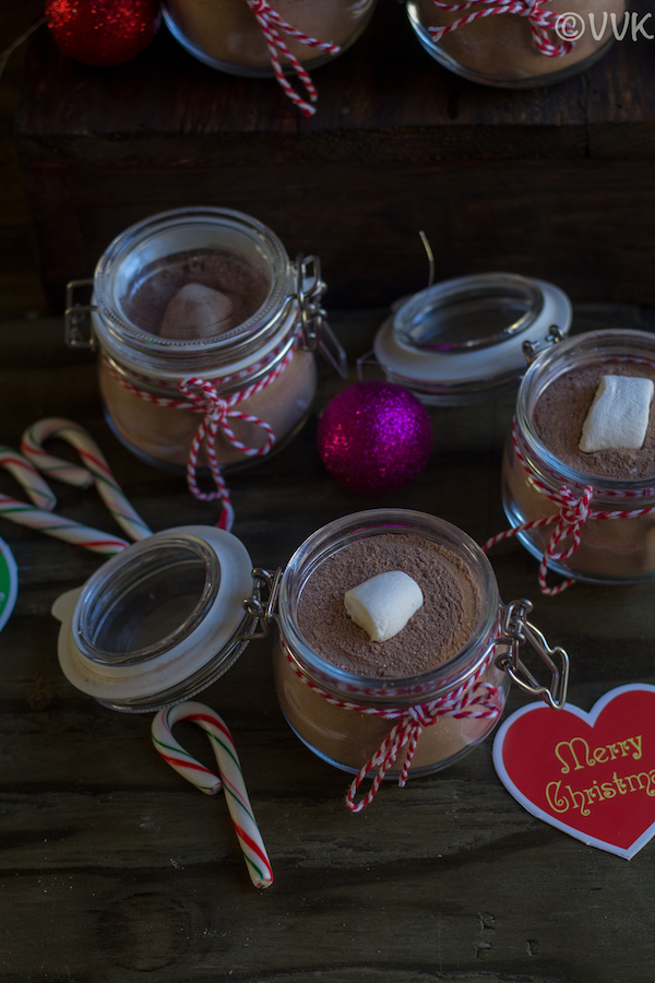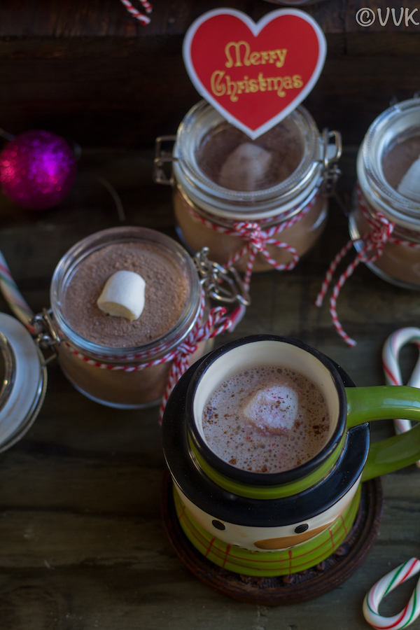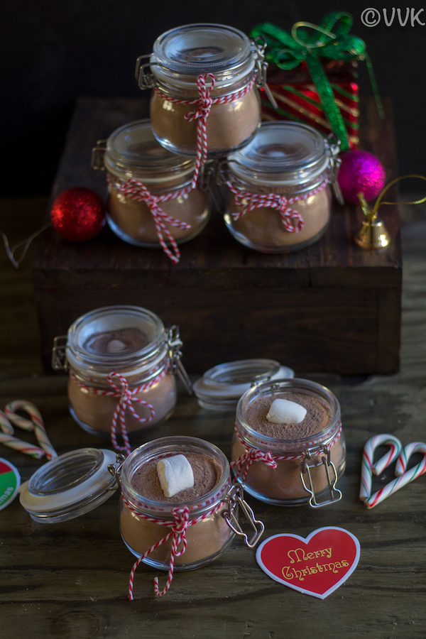 This year instead of baked goodies, I decided to try non-baked stuff for Christmas and gift the same. Last week, I posted no-bake chocolate fudge, candied orange peels, and gumdrops. These recipes are easy, but you need to plan a bit for making them. But what I am going to share today is quick and instant. It doesn’t involve any cooking, microwaving, etc. With readily available ingredients, you can make this hot cocoa mix.