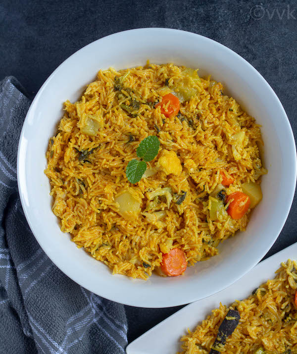 - Make sure you chop the veggies into big chunks for this biryani. You need approx 4 cups of mixed vegetables for this recipe.