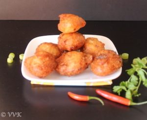 - That’s it. Yummy pakoras are ready. Serve hot with coconut chutney or ketchup.