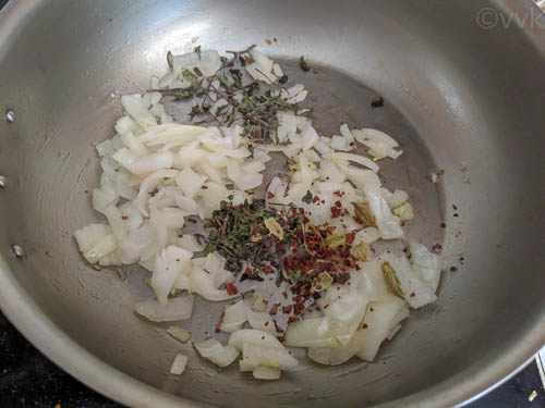 - When the oil is hot, add the onion and cook until it turns translucent.
