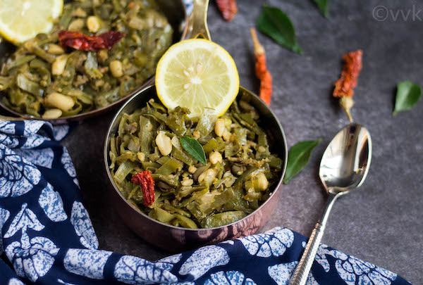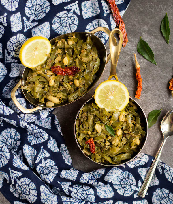 Usually, for most of the stir-frys, we add coconut. But for this curry, I decided to go without coconut but added a lot of semi-crushed peanuts. I love curries with peanuts like okra curry with peanuts. It adds a nice crunch and a flavor to the recipe.