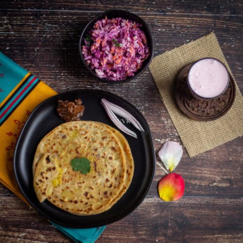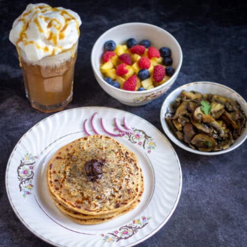 I usually make parathas for our weekend brunch with a side salad and a drink, which I shared during the second week. Here are some assorted paratha platters.