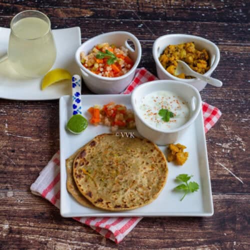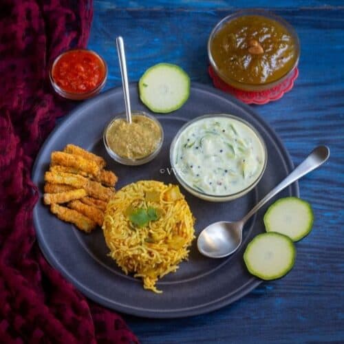 Preparing Indian thalis are not super tricky as you think. You can make an elaborate thali with just one ingredient like how I made my zucchini platter, or you can make elaborate spread like the festival ones or simple weekend meals like parathas or with rice and roti.