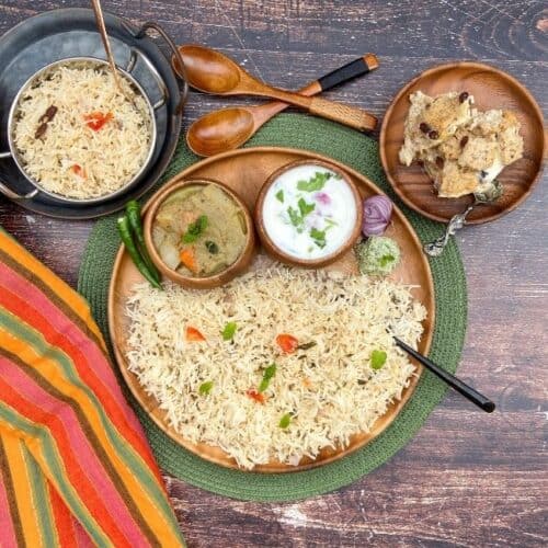 PS – If you try any of these thali/platter combos, please don’t forget to comment and rate this recipe. If you have any questions, please leave a comment, and I will get to it asap. Make sure to follow me on my Pinterest for more healthy and delicious ideas! Follow me on Instagram or join my Facebook Group for more gardening and recipe updates.