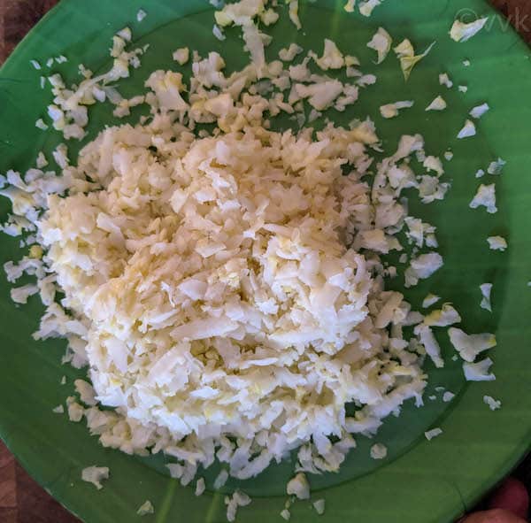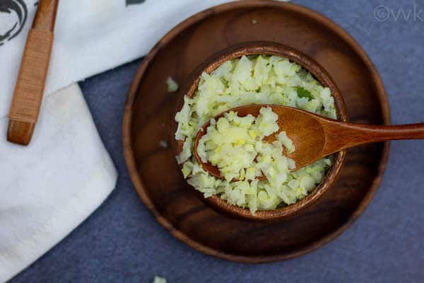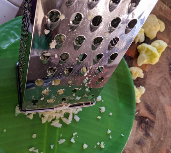 Again, this is a personal preference. Mashed cauliflower didn’t go well when mixed with curries and South Indian sambar and kuzhambu varieties. So I started to grate them.