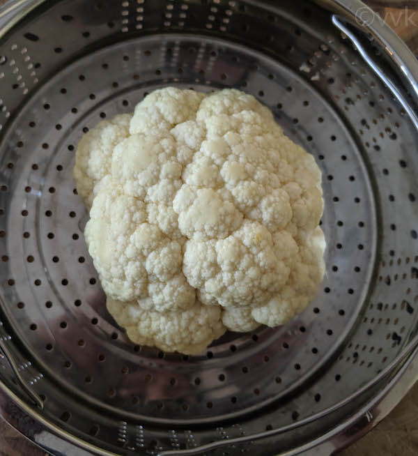 - Now place the cauliflower in the steamer basket.