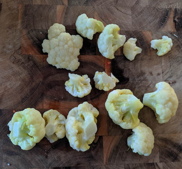 - You can break the cauliflower into small florets like below or grate them whole also.