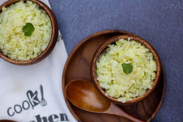 And that’s it. The cauliflower rice is ready. Serve it with your favorite curry. Let it cool before refrigerating.