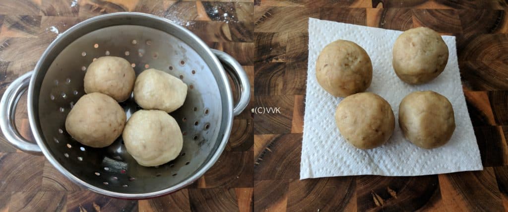 - Once the water starts to boil, slowly drop these balls into the water and let it cook until they float to the surface. In IP it took me about 8 minutes.