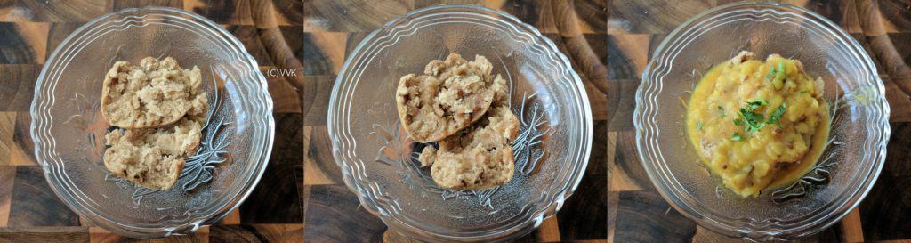 Dal bafla by itself is a filling meal. And if you add some veggies to the dal, you can make it into a balanced meal. As I included wheat and ghee, I cannot claim this as gluten-free and vegan, but I made this as no onion no garlic. I took the base recipe from here. I am yet to try these baflas with other gluten-free flours. You can replace ghee with oil or vegan butter. But I need to agree that, ghee does add a unique flavor to this dal.