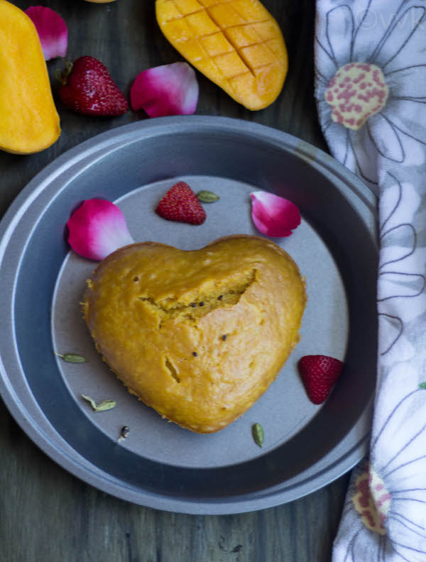 A delicious and easy Eggless Mango Cake with the hint of turmeric and cardamom powder made in Instant Pot. Yes, you read it right – a pressure cooker/Instant Pot cake filled with the sweetness of mangoes. Check out this soft and oh-so-good eggless mango cake recipe with step-wise pictures below.