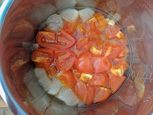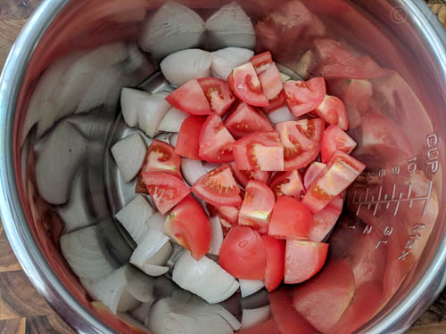 - Add the chopped veggies along with 1 cup of water in the Instant Pot.