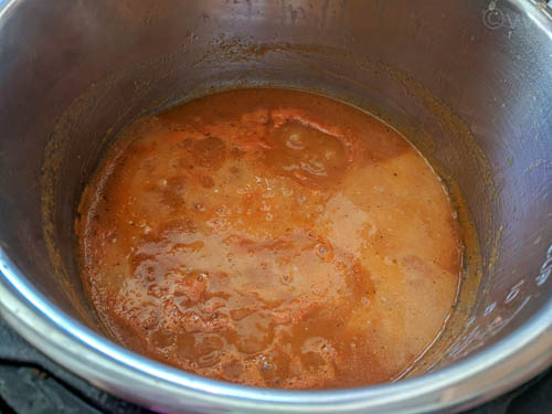 Traditionally, for enchilada sauce, APF is used as a thickening agent, but I went with Rice flour and made it gluten-free. We usually use rice flour as a thickening agent for sambar, so I decided to use that instead of APF. Fresh tomatoes, onion, and garlic add a great flavor to this sauce. I made this sauce in the Instant Pot, but you can make it easily in the pressure cooker or open pot method as well. I have included that in the recipe steps. Without any further ado, here comes my Instant Pot Enchilada Sauce.