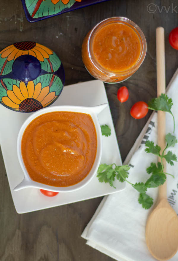 I am not claiming this sauce by any means as traditional or authentic. :-) But I can sure assure that it is tasty and healthy with no preservatives and added colors and also no high sodium. That’s the best part about home cooking right?