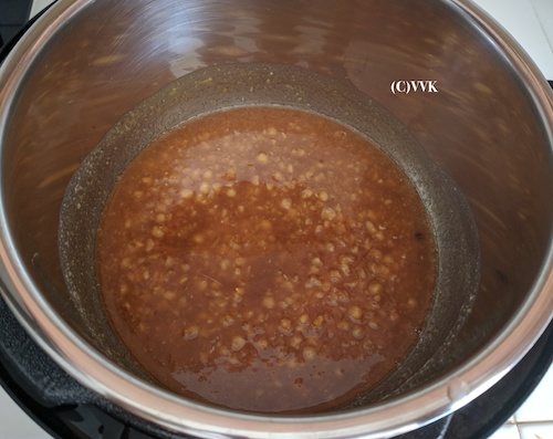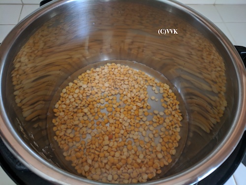 - Add the soaked channa dal to the IP and add 1.5 cups of water.