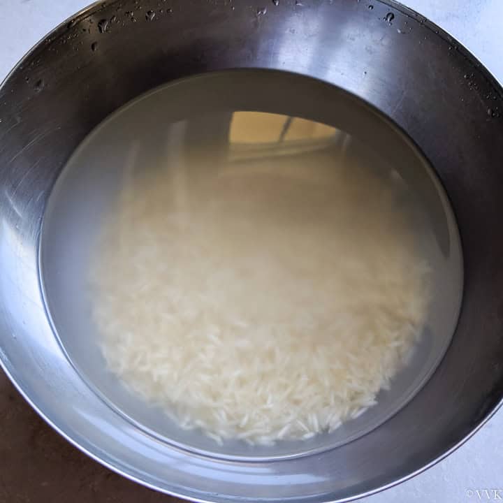 - Rinse the rice thoroughly and soak it in water for 20 minutes and drain the water.