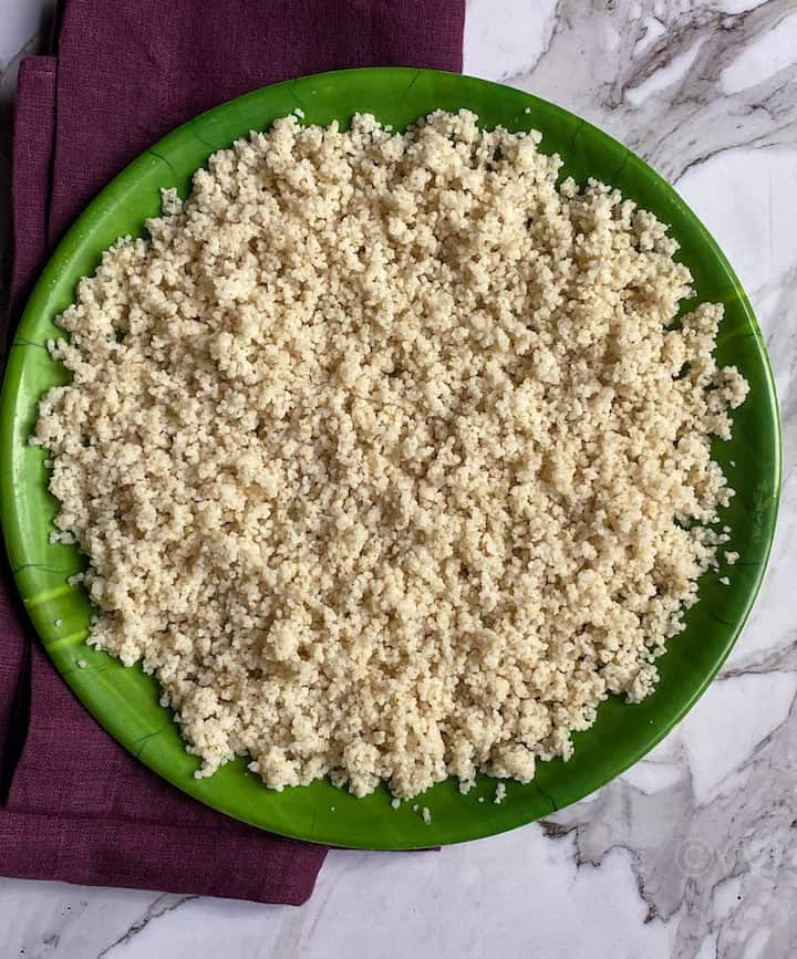 - Let the millets cool, and you can easily transfer the millets to a plate before fluffing. Just flip the millet bowl into a plate, like below.