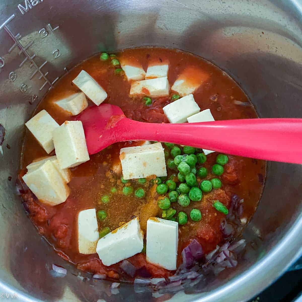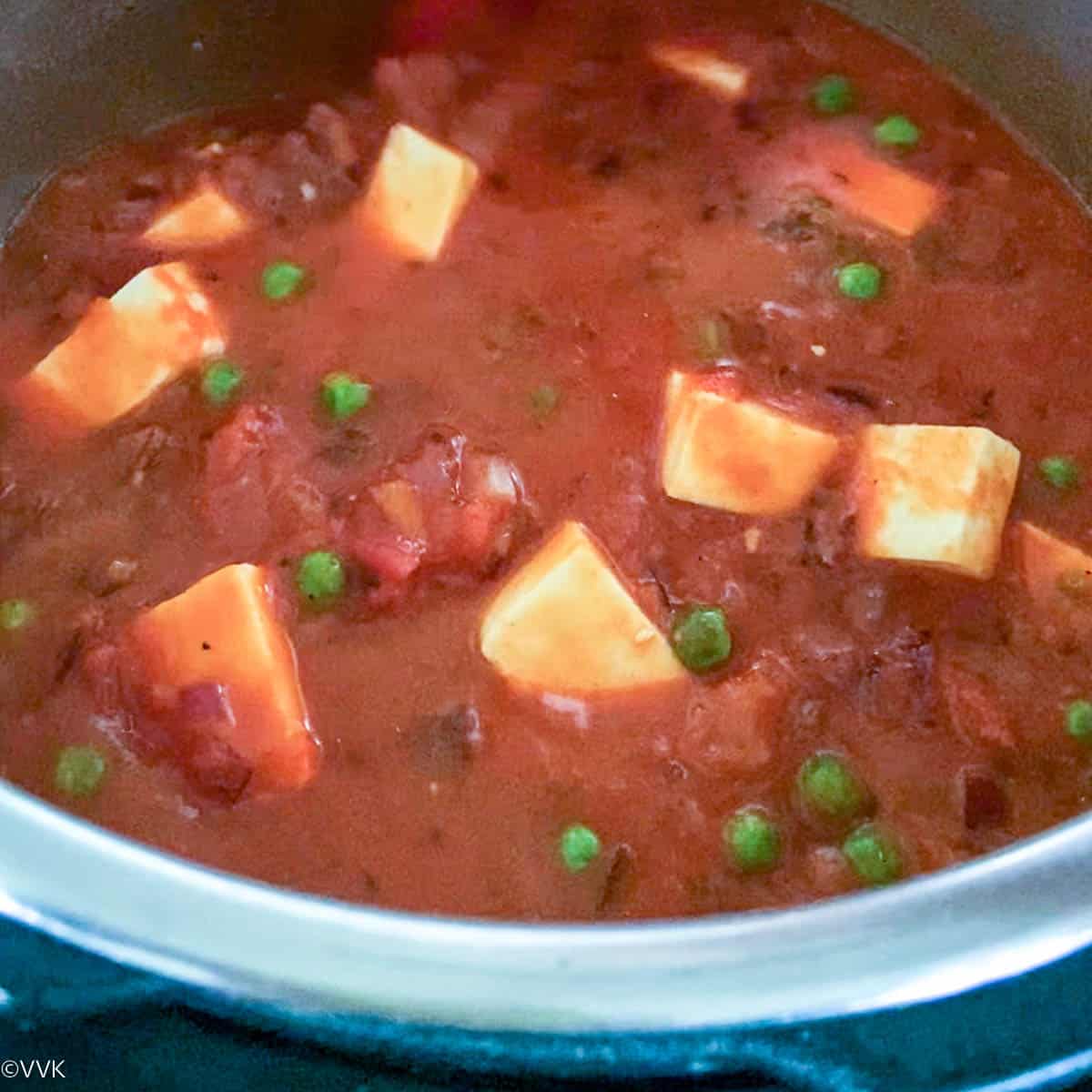 - Let it simmer for a couple of minutes, and that’s it. Instant Pot Paneer gravy is ready. Serve hot with rice and roti.