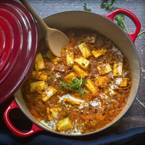 Disclaimer: This is a semi-homemade recipe made without any authentic Indian ingredients. I am not claiming this to be a traditional or authentic recipe, but I can assure you that it’s delicious and easy to make when the time is pressing. This paneer curry is a perfect weeknight dinner recipe that’s a keeper.