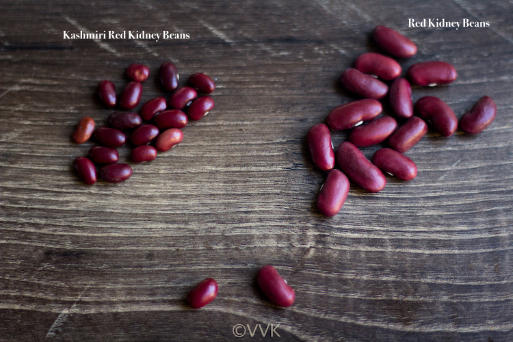 With sundal season coming up, I bet I will use them all. So what’s the difference between these two? Kashmiri rajma is comparatively smaller than the regular kidney beans, and also they differ in color. From what I read, they cook relatively faster than the regular beans and absorb the taste better.