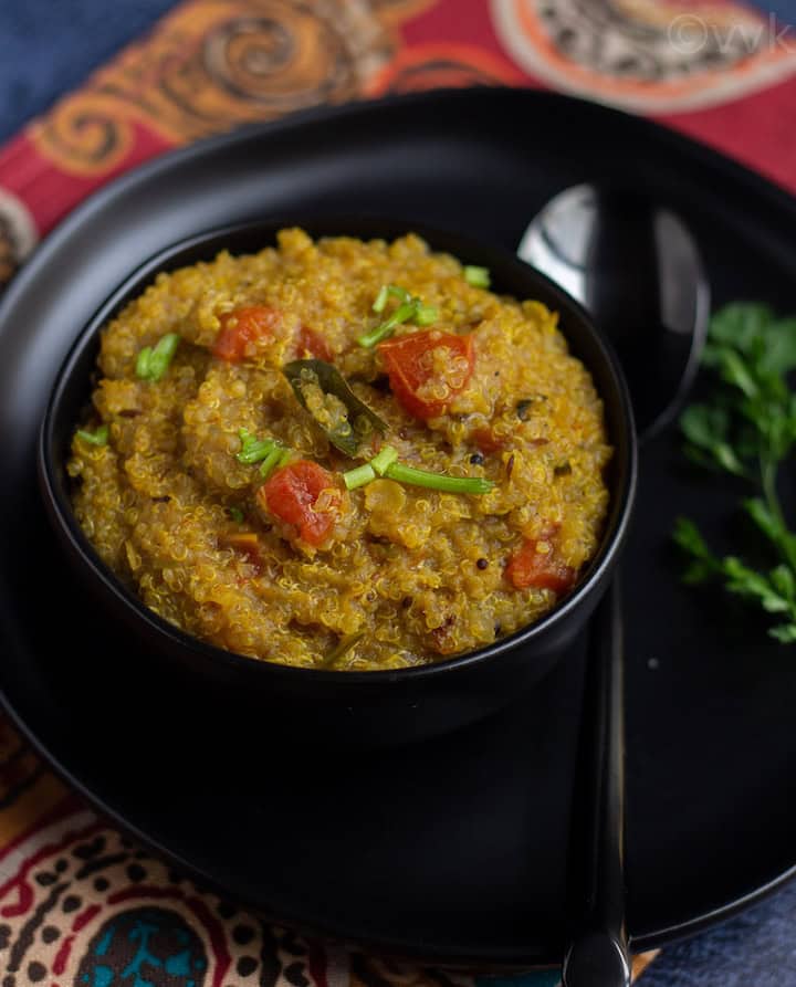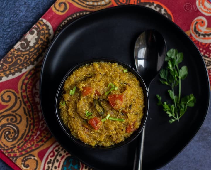 You can skip the toor dal or add masoor dal or moong dal. I did not soak the quinoa or the dal. I just rinsed the quinoa and dal thoroughly and used it directly. There is no harm in soaking for about 15 minutes.