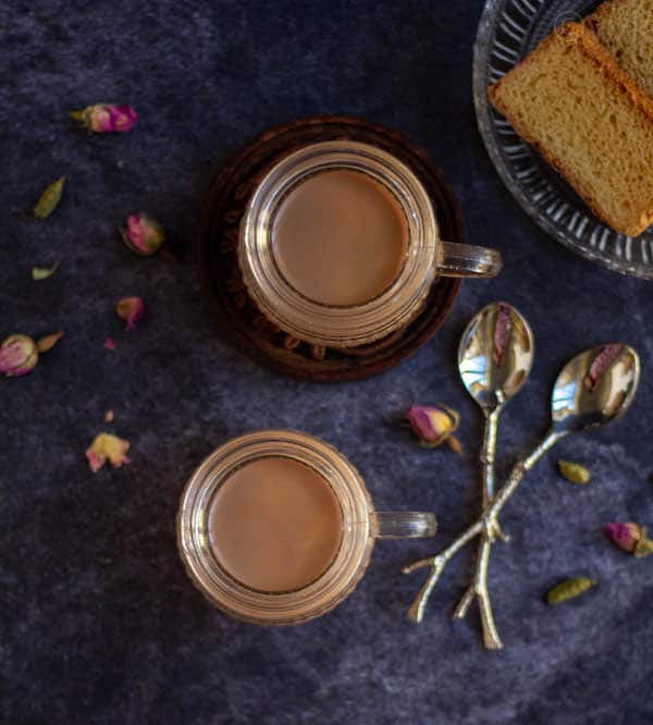 This summer I met some of my blogger friends and Priya who blogs at I Camp in my Kitchen gifted some amazing dried herbs like rosebuds, hibiscus, and lavender. She got it all the way from Dubai. And I am using the dried rosebud for this chai. You can also use good quality edible dried rose petals instead of rosebuds for this rose tea. 10 petals would be good for this measure.