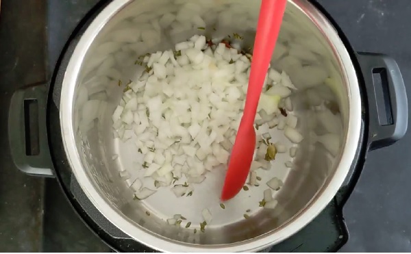 - Then add the 1 cup of chopped onion. Saute the onion for about 3 to 4 minutes.