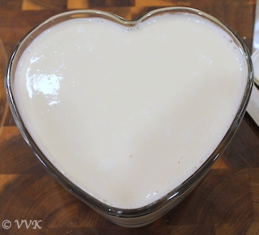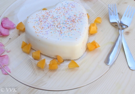 Somehow the pannacotta reminds of the seempaal or the cow’s first milk after delivery. Both differ a lot in taste, but every time I prepare this, it takes me back to the childhood days. You can make this dessert ahead of time as a single-serving dessert. But this time I made it like a cake in a vessel that has the shape of a heart.