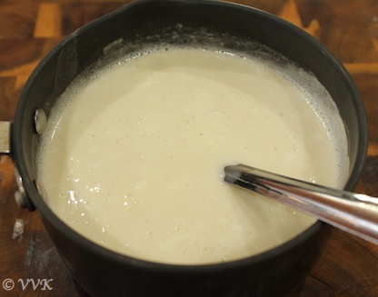 - Keep stirring the mixture either using spoon or with a metal whisker.