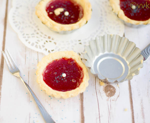 These mini tarts look very cute Vidhya! Must have tasted yumm with the strawberry jam.